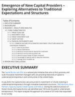 Resources Reports Explore various reports on barriers that entrepreneurs face, different types of financing structures, determining which financial option is right for you, and more. Explore the Reports Facebook Linkedin Twitter READ MORE > Access to Capital for Entrepreneurs: Removing Barriers (2023 Update) By the Kauffman Foundation The Kauffman Foundation continues to recognize, with urgency, the significance of the role new and existing businesses play in local, regional, and the national economy. This report continues our series of sharing the state of capital access for entrepreneurs highlighting the need for innovative products and models to improve capital delivery systems. READ MORE > Access to Capital for Entrepreneurs: Removing Barriers (2021 Update) By the Kauffman Foundation The need for access to opportunity, funding, knowledge, and support is greater than ever before to ensure that historically underserved entrepreneurs are able to access the capital required to survive and thrive. This report explores the work we have embarked on to generate more innovative and effective ways to support entrepreneurs in accessing capital. DOWNLOAD [PDF] > Access to Capital for Entrepreneurs: Removing Barriers (2019) By the Kauffman Foundation Lack of access to capital is often cited as one of the primary barriers entrepreneurs face in starting or growing a business. This report surveys the current knowledge landscape regarding access to capital with an eye towards innovative concepts for improvement to capital access systems. DOWNLOAD [PDF] > Deconstructing the Pipeline Myth and the Case for More Diverse Fund Managers By Marlon Nichols, MaC Venture CapitalCollin West, Kauffman FellowsGopinath Sundaramurthy, Kauffman Fellows In a novel approach to studying ethnicity in startups, we leveraged software to analyze the faces of startup executives to gather empirical answers. More specifically, the Kauffman Fellows Research Center analyzed the profile images of 260,000+ startup founders and executives in the United States using publicly available demographic models created by Clairifai. LEARN MORE > Emergence of New Capital Providers – Exploring Alternatives to Traditional Expectations and Structures By Impact Terms Through our analysis, we learned that funds investing in underserved entrepreneurs through alternative investment structures are often nimble investment vehicles that operate in the very early stages of the portfolio companies’ development, really enabling these companies to raise the first essential capital to fuel their growth. SIGN UP TO RECEIVE THE PLAYBOOK > Finding the Right Financing for Your Capital Needs By Lighter Capital Learn about the startup fundraising options available today, and how to compare each option based on your company’s stage. DOWNLOAD [PDF] > Guidelines for Equitable Employee Ownership Transitions By Jessica Rose, The Democracy CollaborativeHilary Irby, Soros Fund ManagementMarjorie Kelly, The Democracy CollaborativeRobin Varghese, Open Society Foundations A collaborative project of practitioners and thought leaders in the fields of investment management, employee ownership, and socially responsible business who believe deeply in the promise of shared enterprise ownership to build a more just and inclusive economy. DOWNLOAD [PDF] > Race influences professional investors’ financial judgments By Sarah Lyons-Padillaa, Stanford UniversityHazel Rose Markus, Stanford UniversityAshby Monk, Stanford UniversitySid Radhakrishnac, Illumen CapitalRadhika Shahc, Illumen CapitalDaryn Dodson IV, Illumen CapitalJennifer Eberhardta, Stanford University Of the $69.1 trillion global financial assets under management across mutual funds, hedge funds, real estate, and private equity, fewer than 1.3% are managed by women and people of color. Why is this powerful, elite industry so racially homogenous? DOWNLOAD THE E-BOOK [PDF] > The Equity Capital Gap for Entrepreneurs of Color in Chicago By Charisse Conanan Johnson, Next StreetJoan Spirytus, Next StreetCristina Yoder, Next StreetSpencer Lau, Next Street History tells us that entrepreneurs of color are disproportionally affected by recession and times of economic hardship. And while it’s important that small business owners have access to a range of debt and equity financing options and data show that entrepreneurs of color face more barriers to accessing capital across this full financing continuum than do their White counterparts, this report focused on the particular challenge associated with equity and equity-like capital. SIGN UP TO DOWNLOAD [PDF] > The New Face of a Founder By Lauren Washington, Black Women Talk TechBrittany Kendrick, Black Women Talk TechDulari Gandhi, Michael & Susan Dell Foundation Black women are building valuable products and businesses with scalable market opportunities. SIGN UP TO RECEIVE THE E-BOOK > The Rise of Revenue-Based Financing By Lighter Capital Discover why startups are increasingly turning to alternative financing options like revenue-based financing.